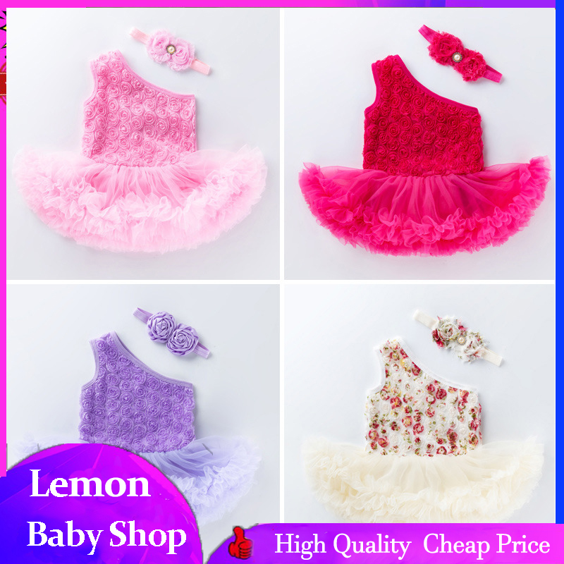 Baby Slanted Shoulder Baptism Dress Rose Red New Born Baby Girls Infant Dress Pink Christening Dresses For Baby S Girl 3 6 9 Months Shopee Philippines