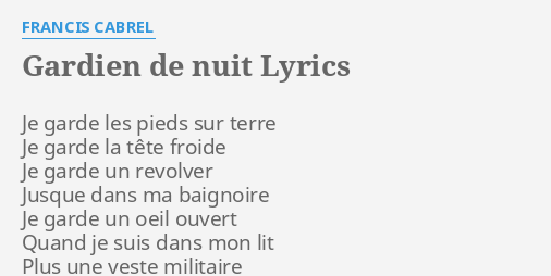 Gardien De Nuit Lyrics By Francis Cabrel Je Garde Les Pieds