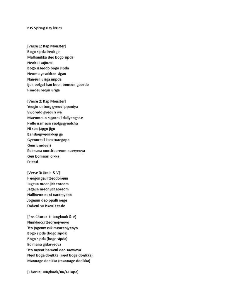 Bts Spring Day Eng Lyrics 안녕하세요 Welcome To A K A R I A S Blog